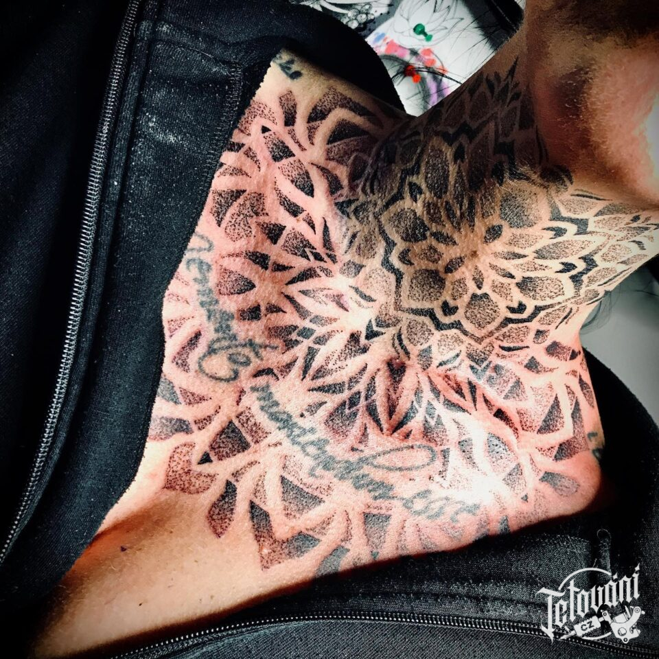Tetování ornamenty, mandala na krk