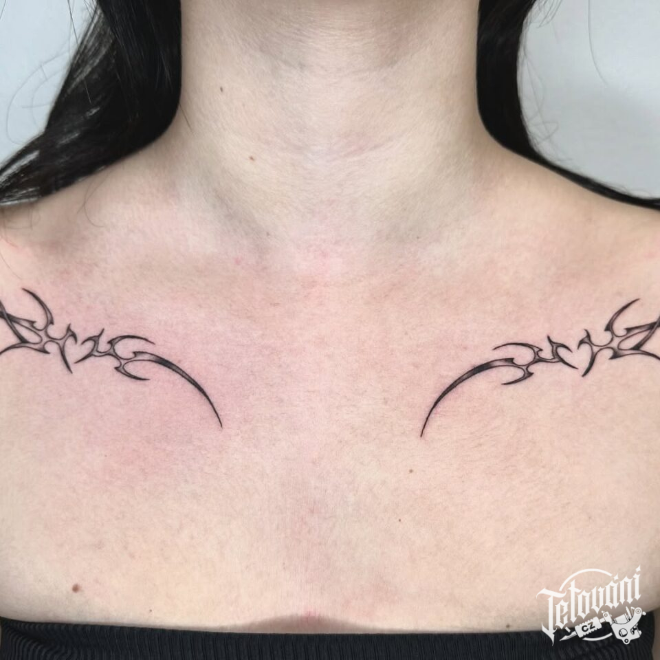 Tetování ornamenty pod klíční kosti