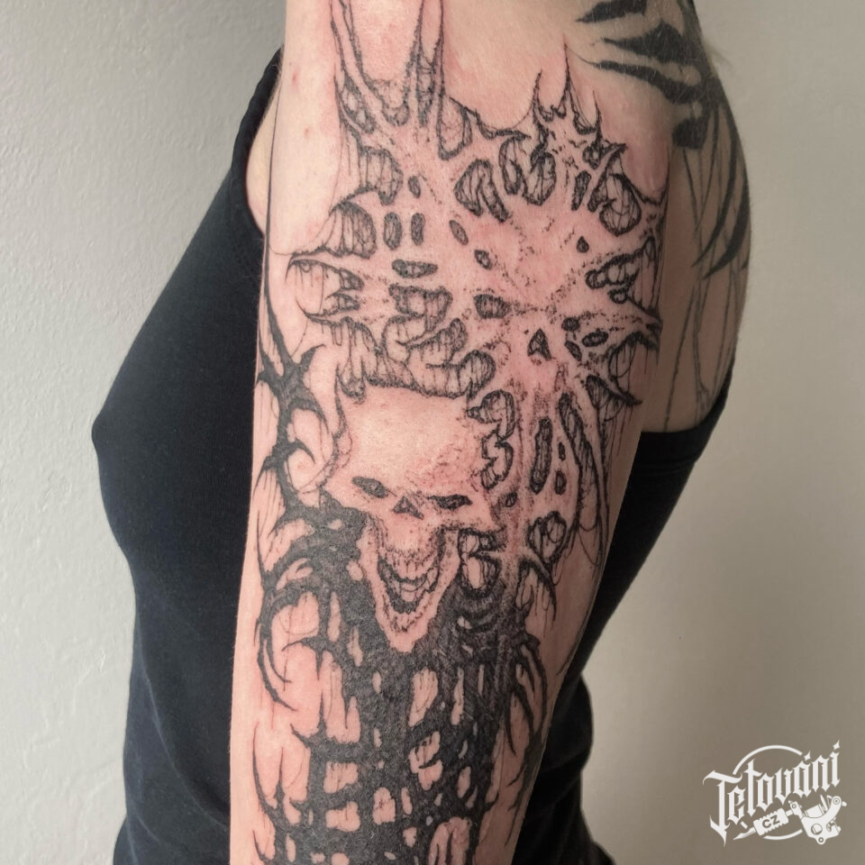 Tetování ornamenty s ďáblem na ruce