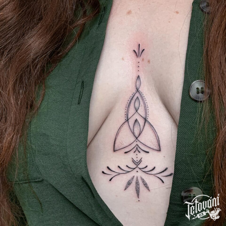 Tetování ornamenty, symboly mezi prsa