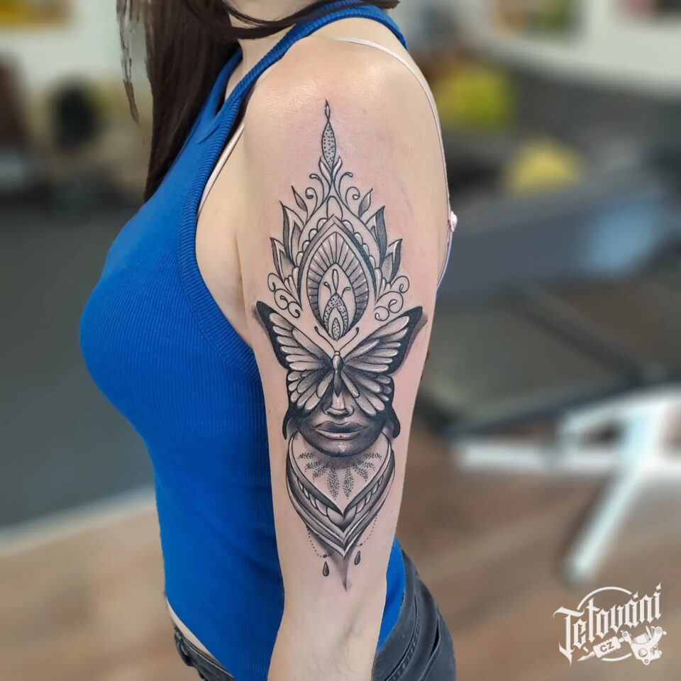 Tetování ornamenty, zvíře motýl na rameno