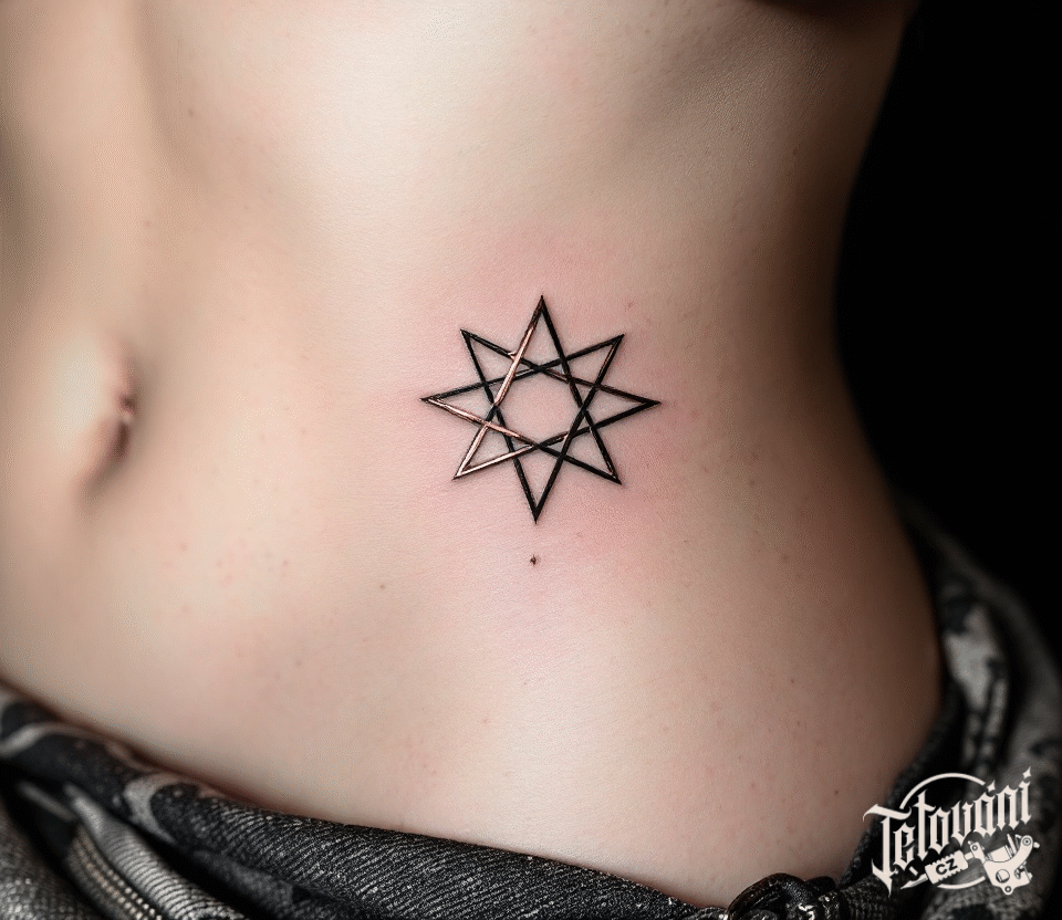 Tetování osmicípá hvězda, symbol na břicho