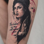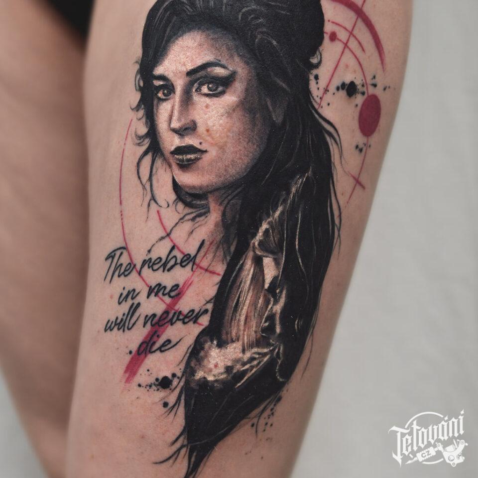 Tetování osobnost Amy Winehouse na stehno