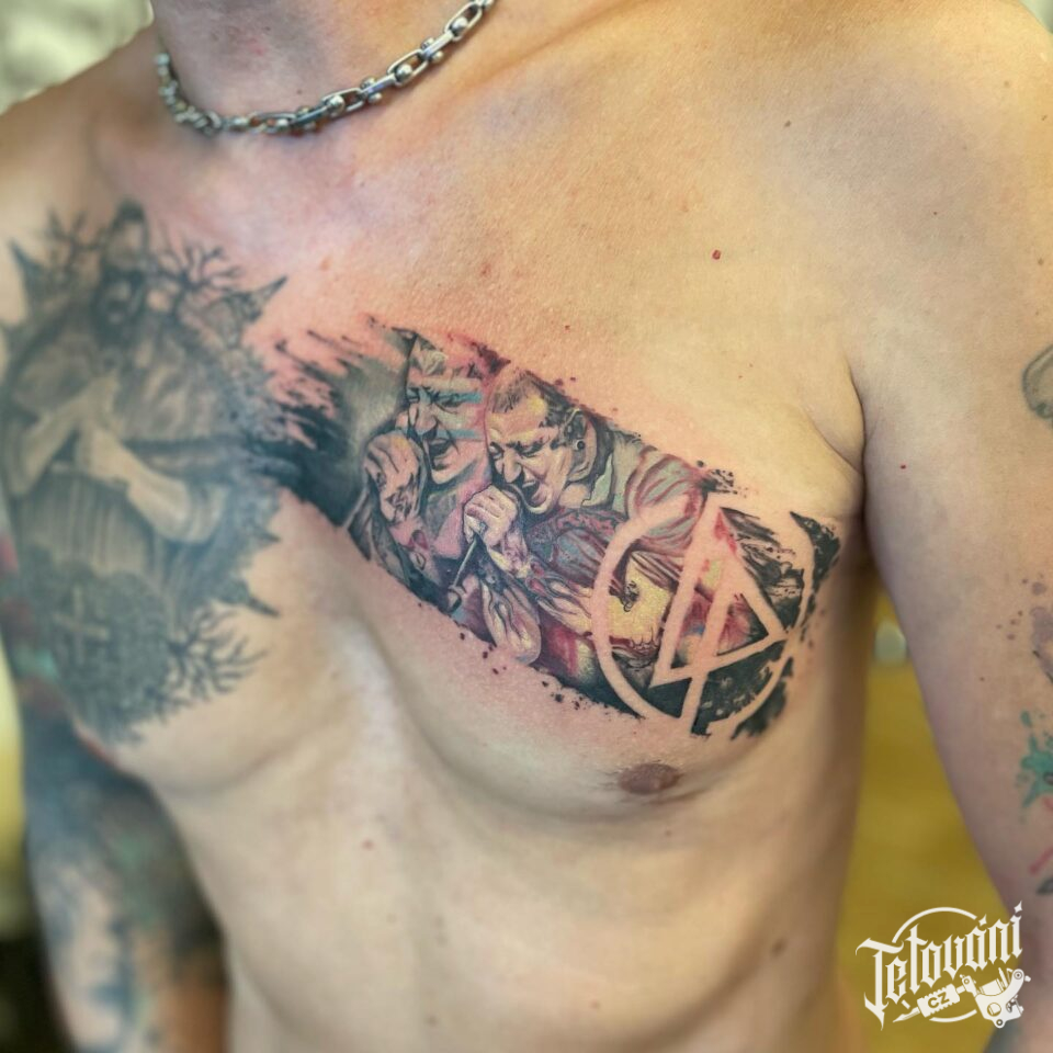 Tetování osobnost Chester, hudba Linkin Park na prso