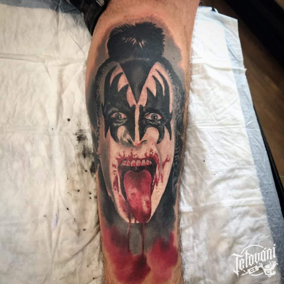 Tetování osobnost Gene Simons na lýtko