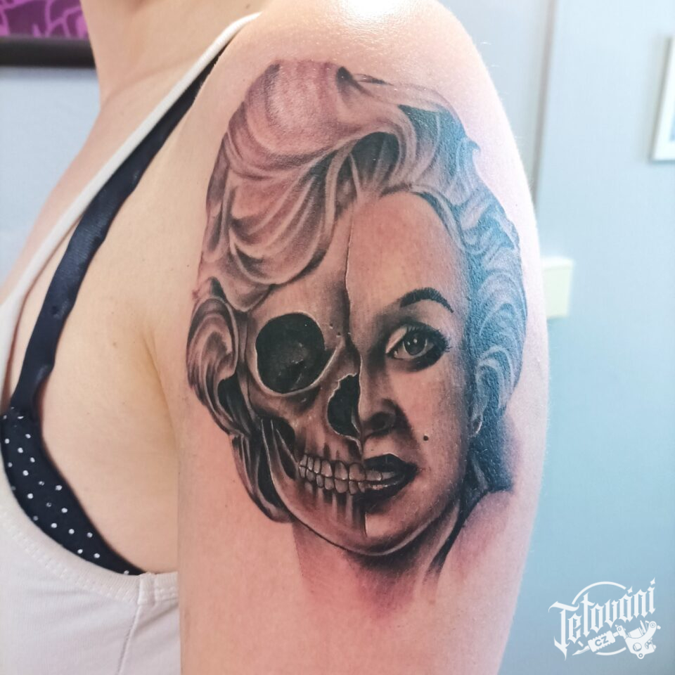Tetování osobnost Marilyn Monroe, lebka na rameno