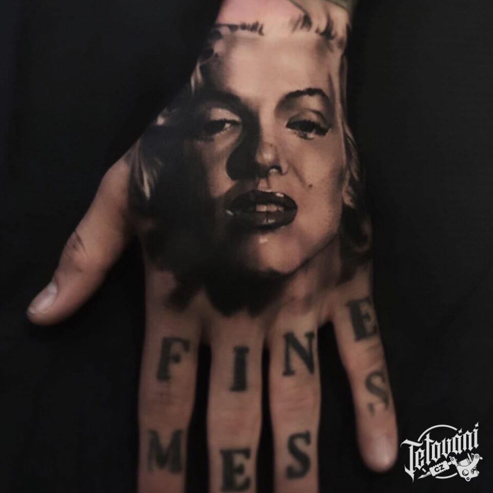 Tetování osobnost Marilyn Monroe na hřbet ruky