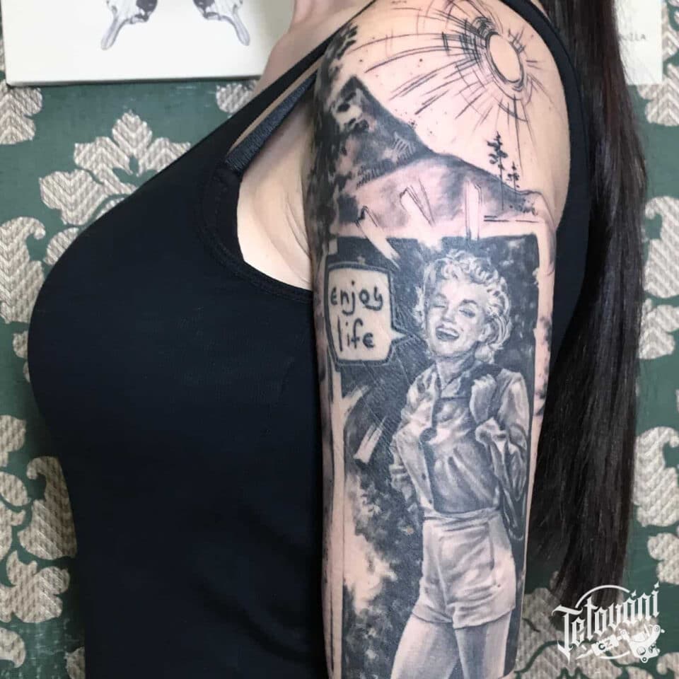 Tetování osobnosti a nápis na rameno