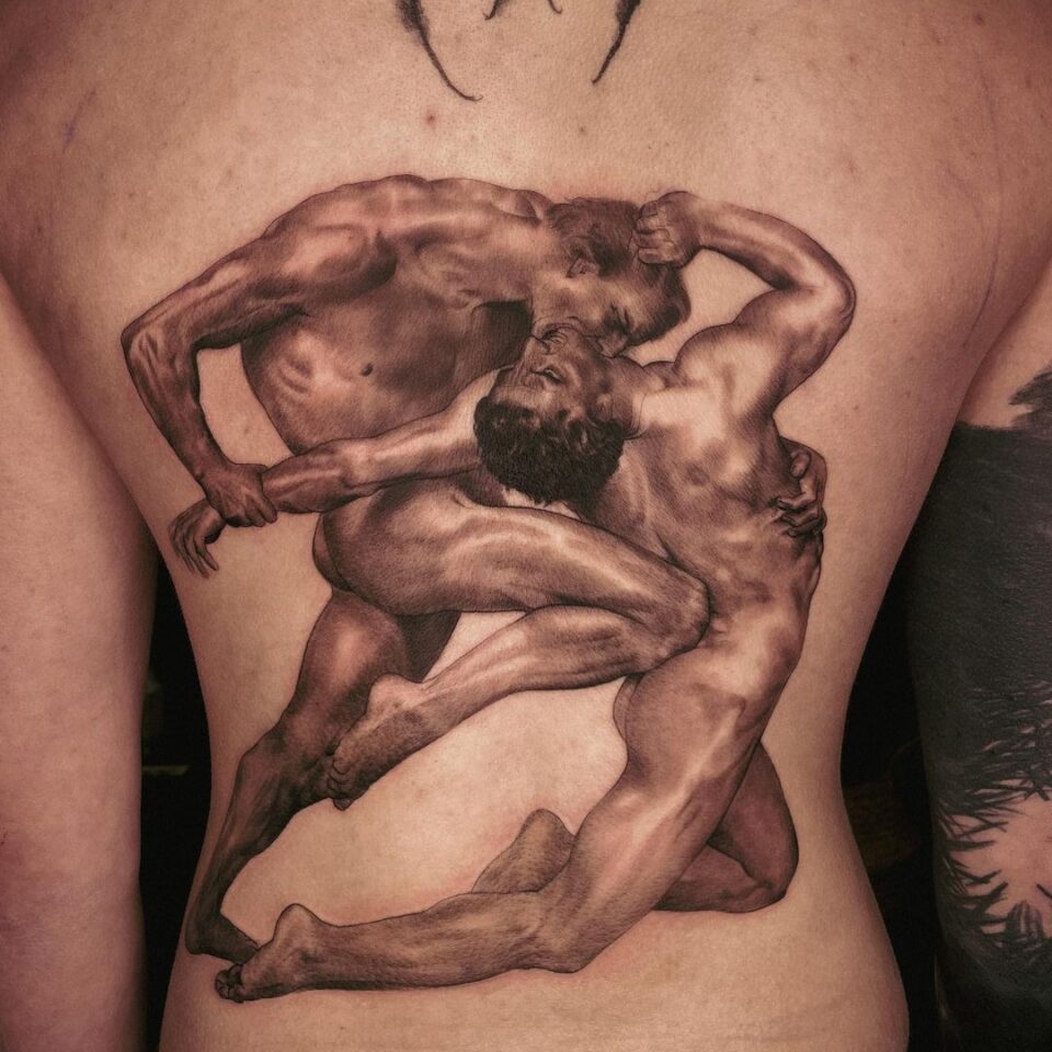 Tetování osobnosti, Dante and Virgil od Wiliam-Adolphe Bouguereau na zádech