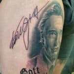 Tetování osobnosti Karel Gott na stehno