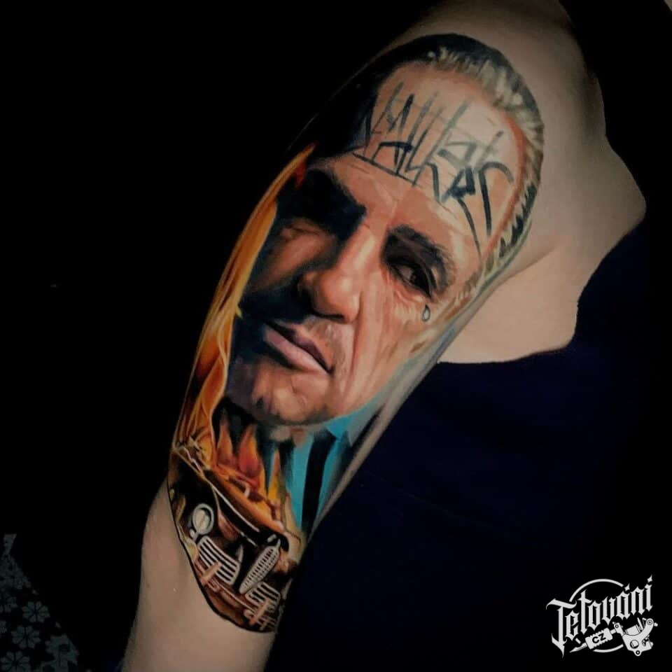 Tetování osobnosti Marlon Brando, dopravní prostředek auto, nápis na rameno