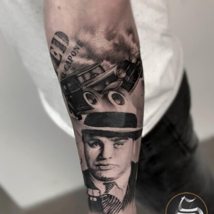 Tetování osobnosti, portrét 50 Cent na předloktí