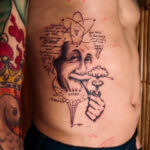 Tetování osobnosti, portrét a nápisy na žebrech