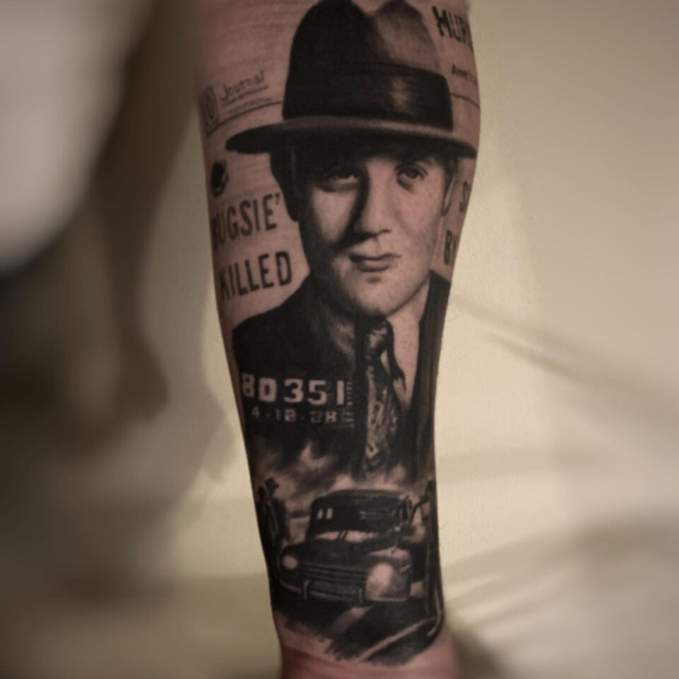 Tetování osobnosti, portrét, Bugsy a auto na předloktí
