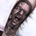Tetování osobnosti, portrét, Chester Bennington na předloktí