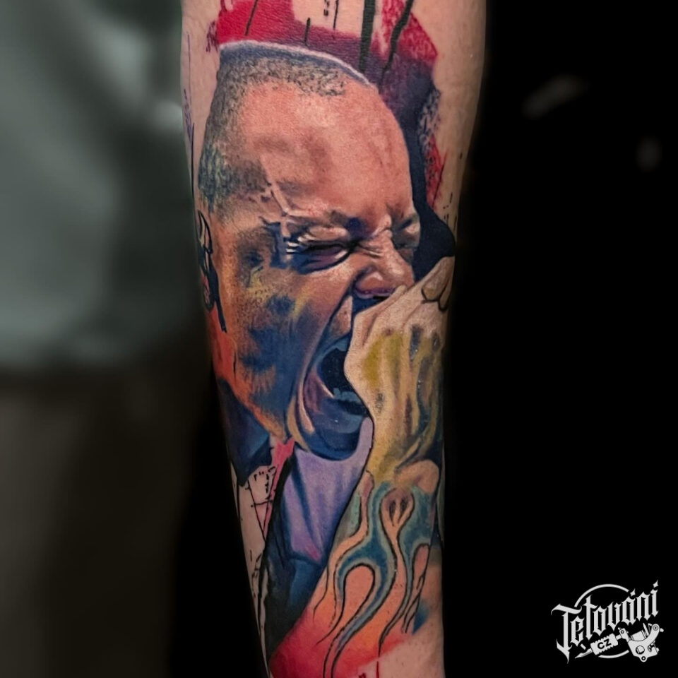 Tetování osobnosti, portrét, Chester Bennington na předloktí