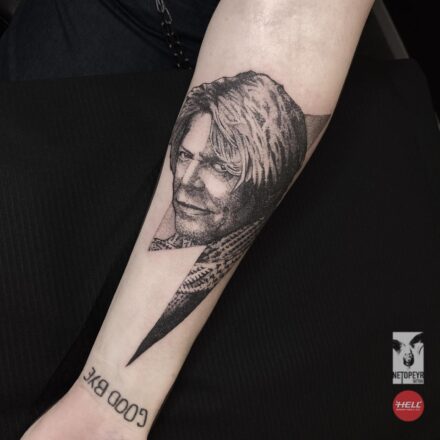 Tetování osobnosti, portrét Chester Bennington na předloktí