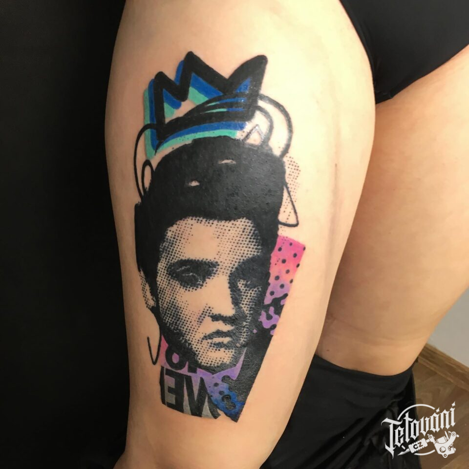 Tetování osobnosti, portrét, Elvis Presley na stehně