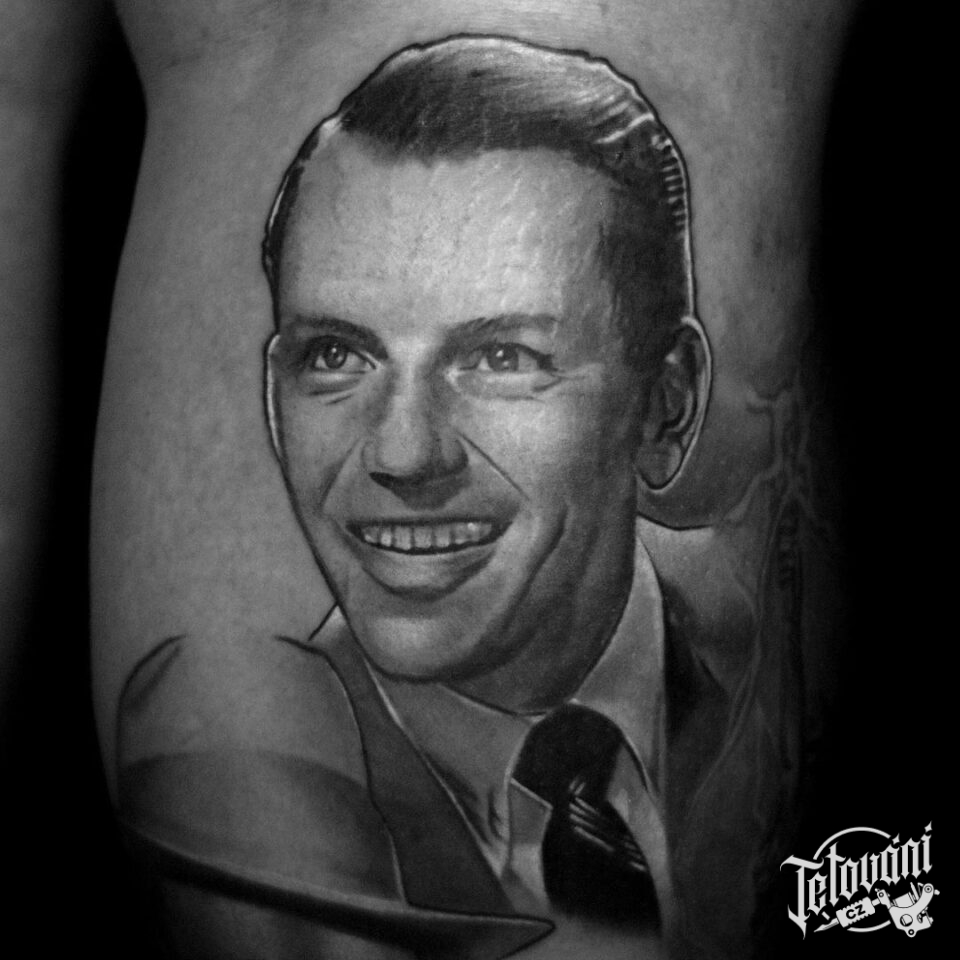 Tetování osobnosti, portrét Frank Sinatra na lýtku