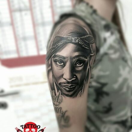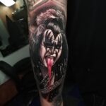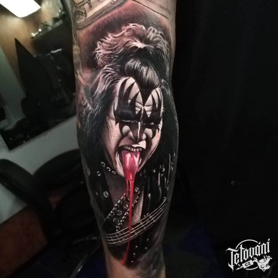Tetování osobnosti, portrét, Gene Simmons na předloktí