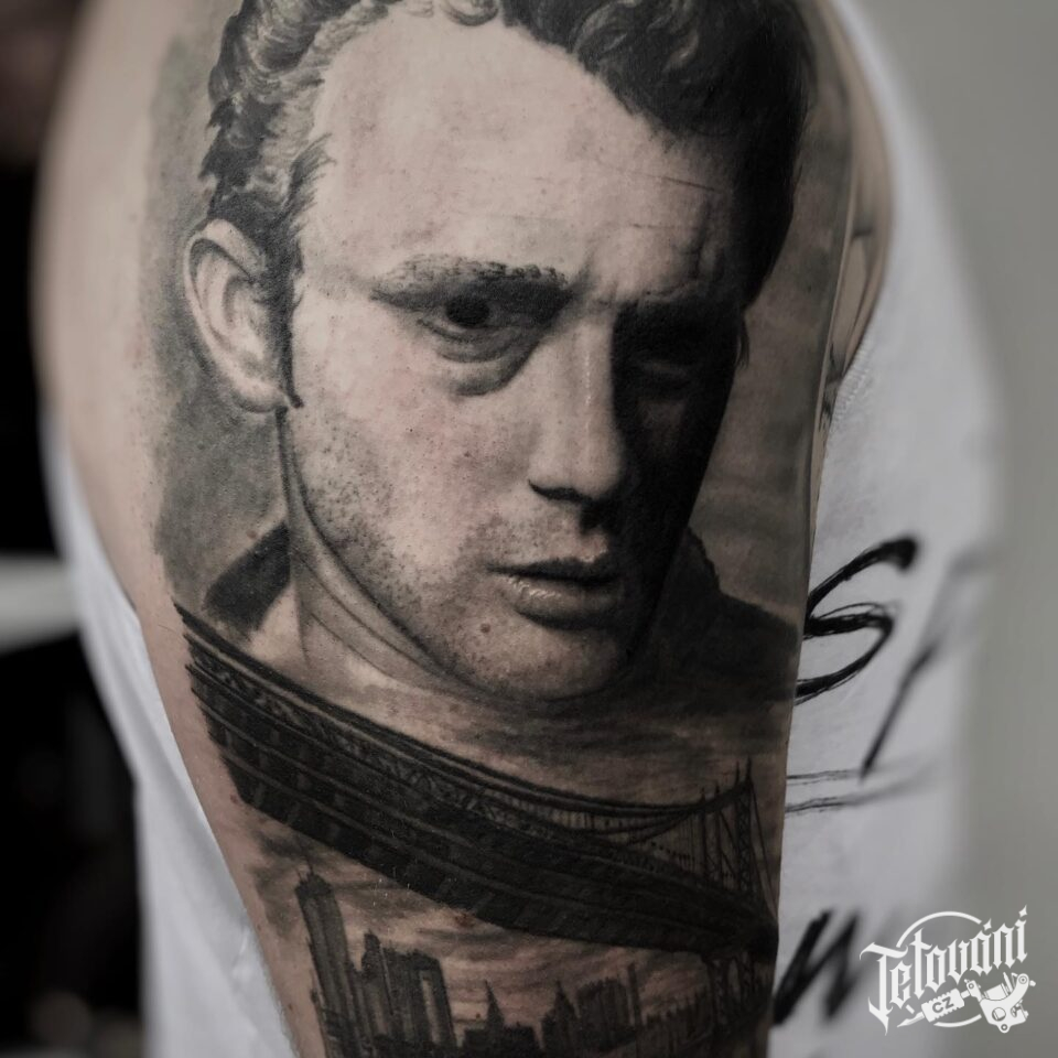 Tetování osobnosti, portrét Jamese Deana na rameni