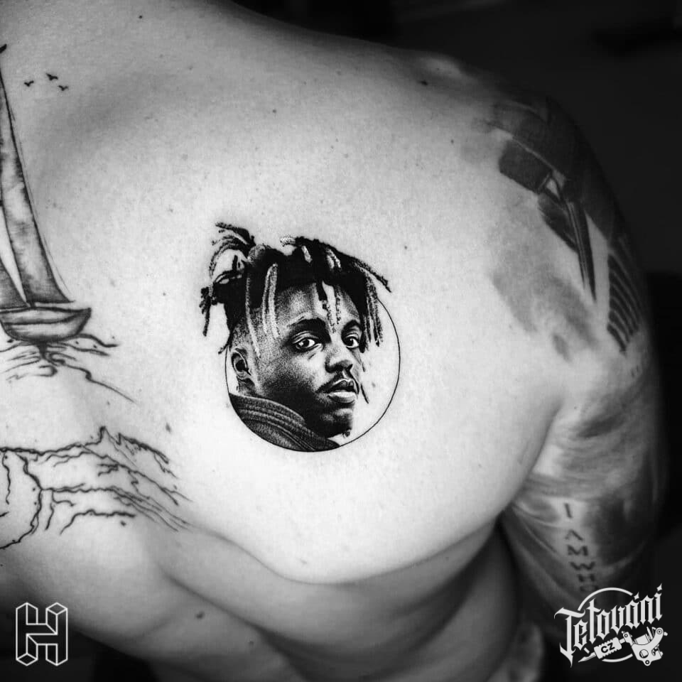 Tetování osobnosti, portrét, Juice Wrld na lopatce