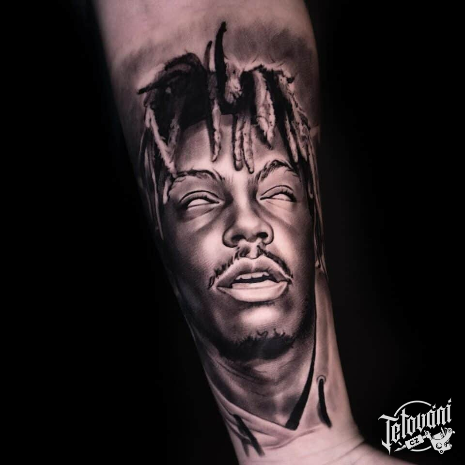 Tetování osobnosti, portrét Juice Wrld na předloktí