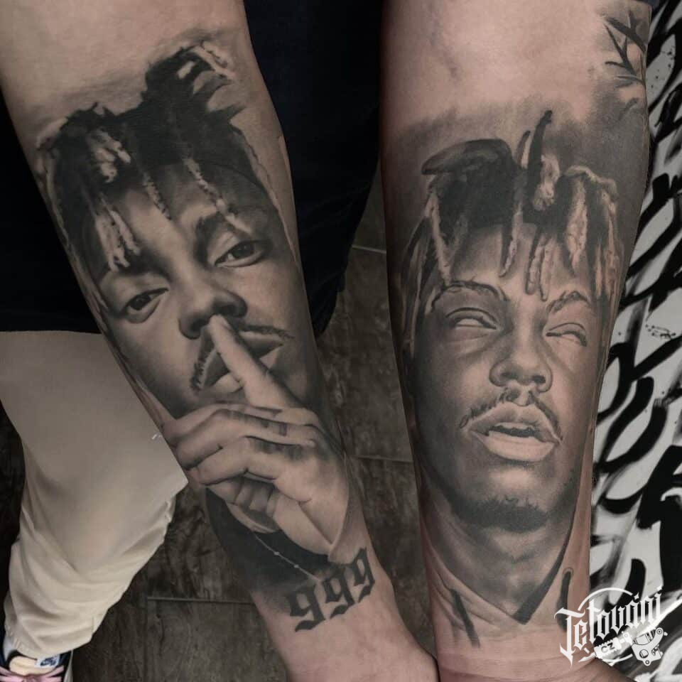 Tetování osobnosti, portrét Juice Wrld na předloktí