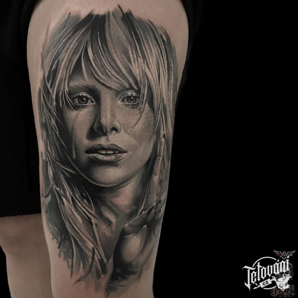 Tetování osobnosti, portrét, Lady Gaga na stehně