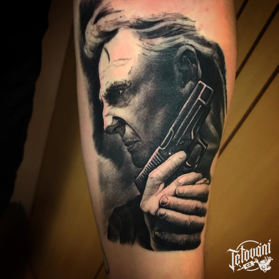 Tetování osobnosti, portrét, Liam Neeson na předloktí