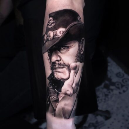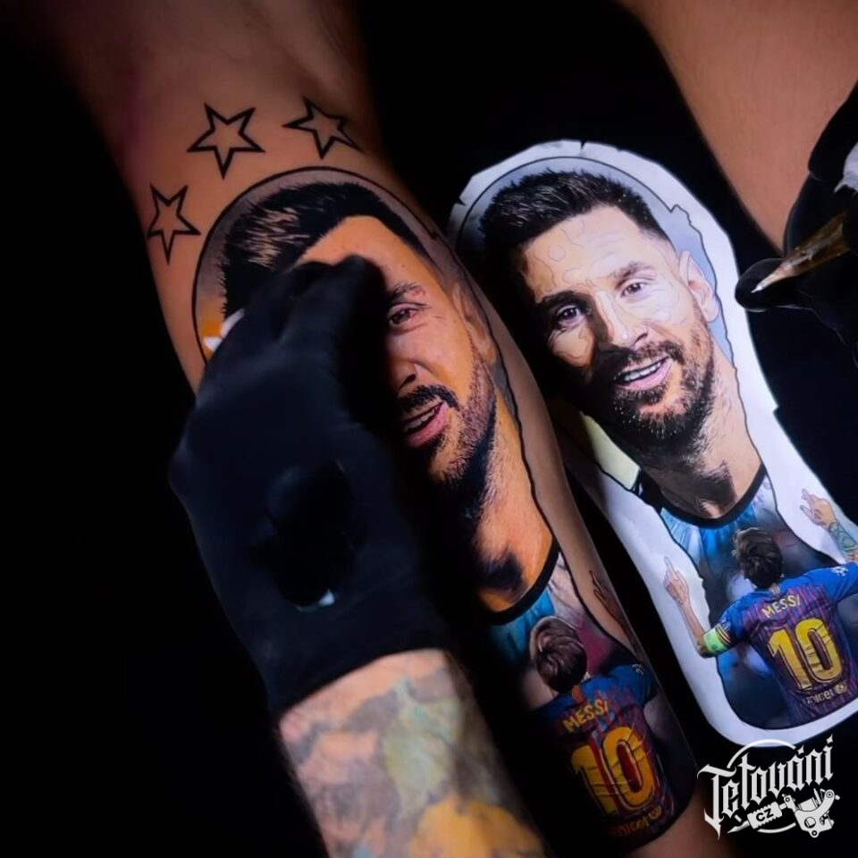 Tetování osobnosti, portrét, Lionel Messi na lýtku