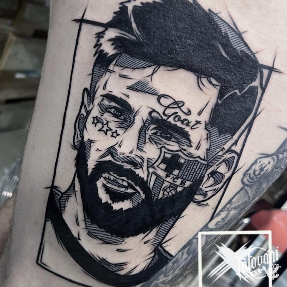 Tetování osobnosti, portrét, Lionel Messi na
