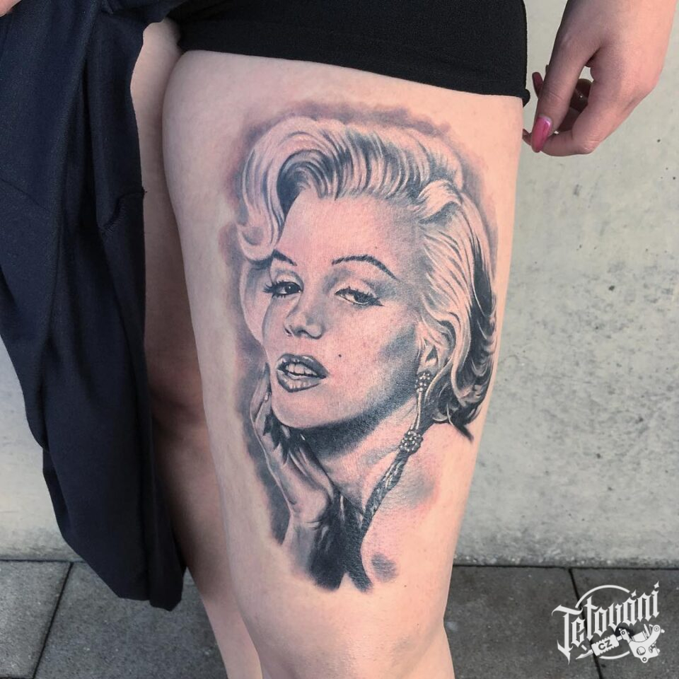 Tetování osobnosti, portrét Marilyn Monroe na stehně