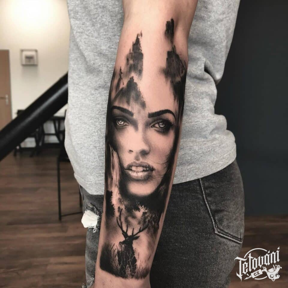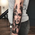 Tetování osobnosti, portrét, Megan Fox na předloktí
