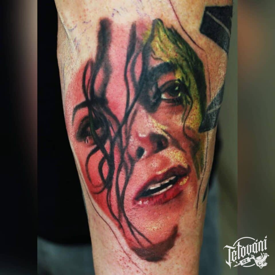 Tetování osobnosti, portrét, Michael Jackson na předloktí
