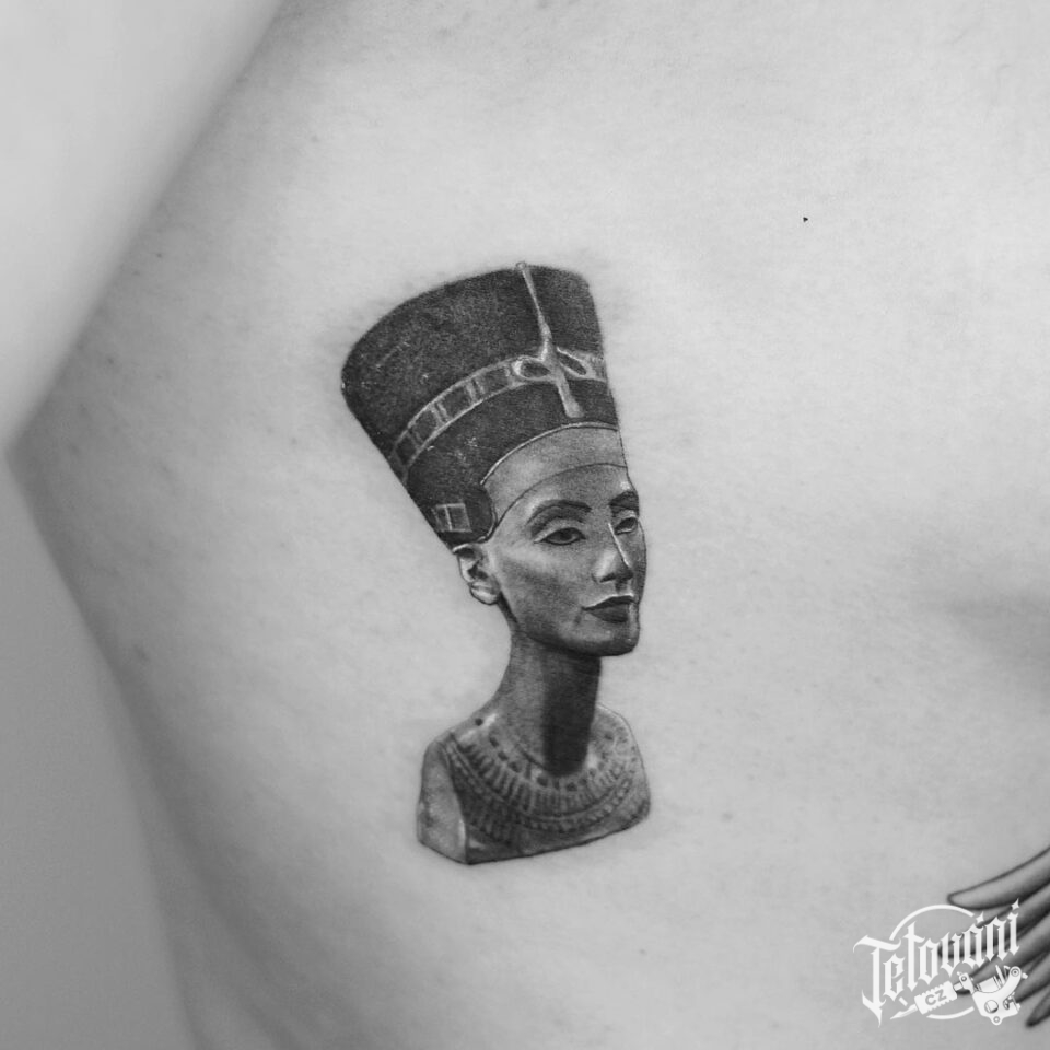 Tetování osobnosti, portrét Nefertiti na žebrech