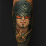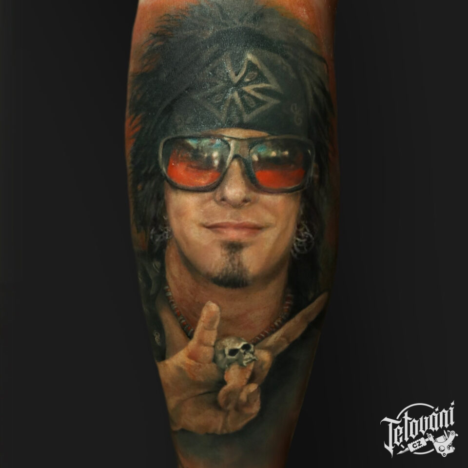 Tetování osobnosti, portrét, Nikki Sixx na lýtku