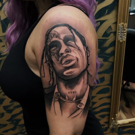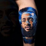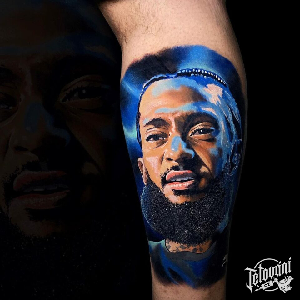Tetování osobnosti, portrét Nipsey Hussle na lýtku