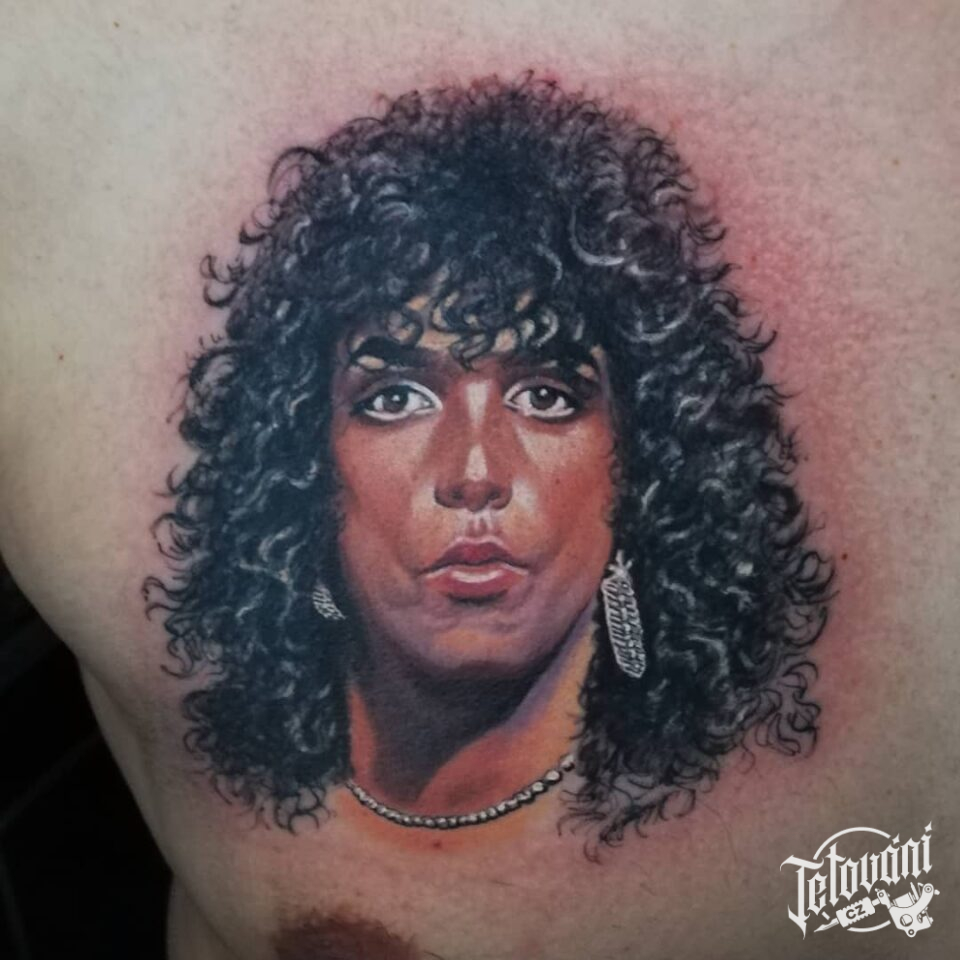 Tetování osobnosti, portrét, Paul Stanley z Kiss na hrudi