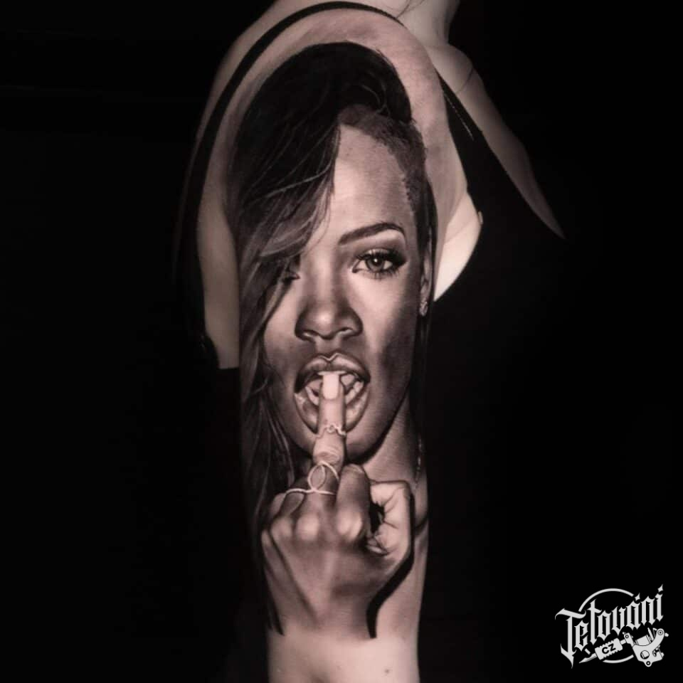 Tetování osobnosti, portrét Rihanny na rameni
