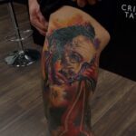 Tetování osobnosti, portrét, Salvador Dalí na boku stehna