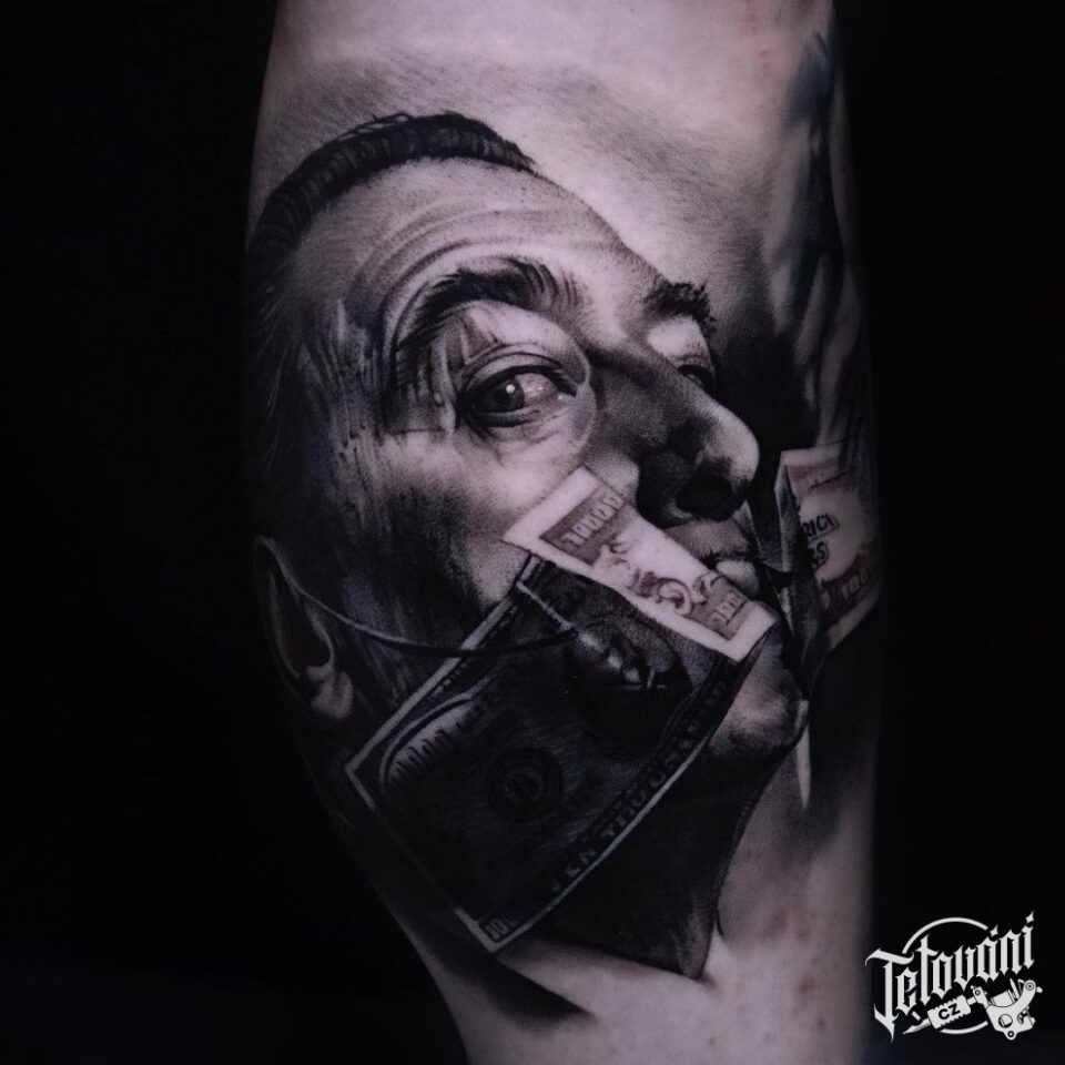 Tetování osobnosti, portrét Salvador Dalí na předloktí