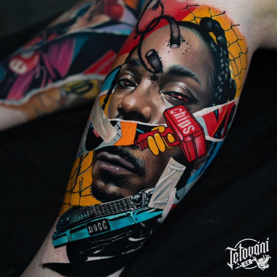 Tetování osobnosti, portrét Snoop Dogg na lýtku