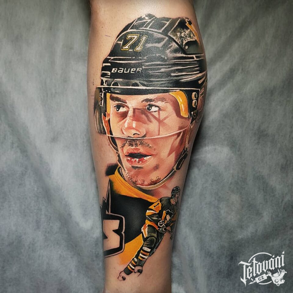 Tetování osobnosti, portrét, sport, hokej na lýtku