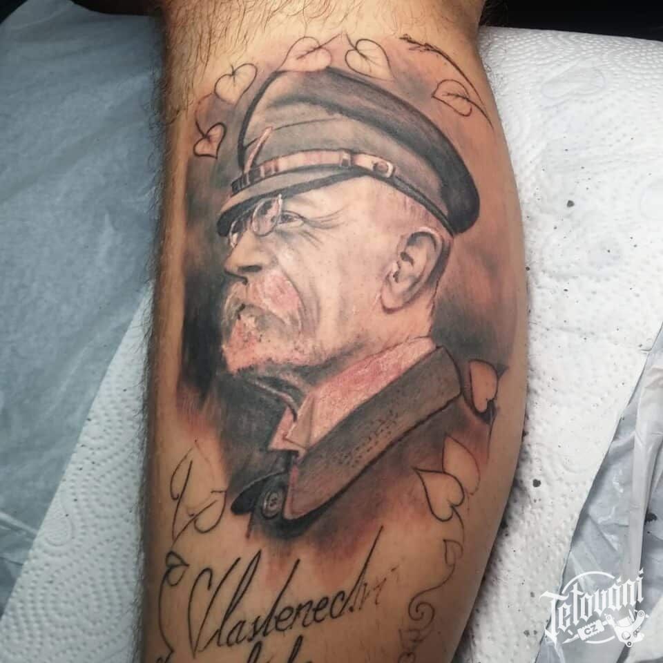 Tetování osobnosti, portrét T. G. Masaryk na lýtku