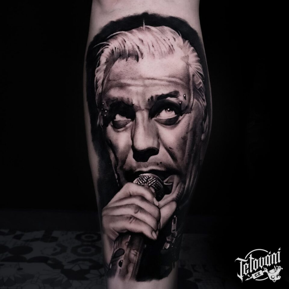 Tetování osobnosti, portrét Tilla Lindemanna na lýtku