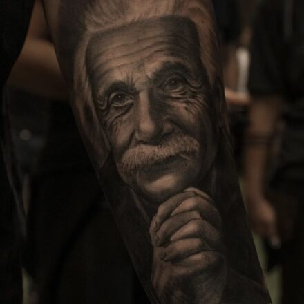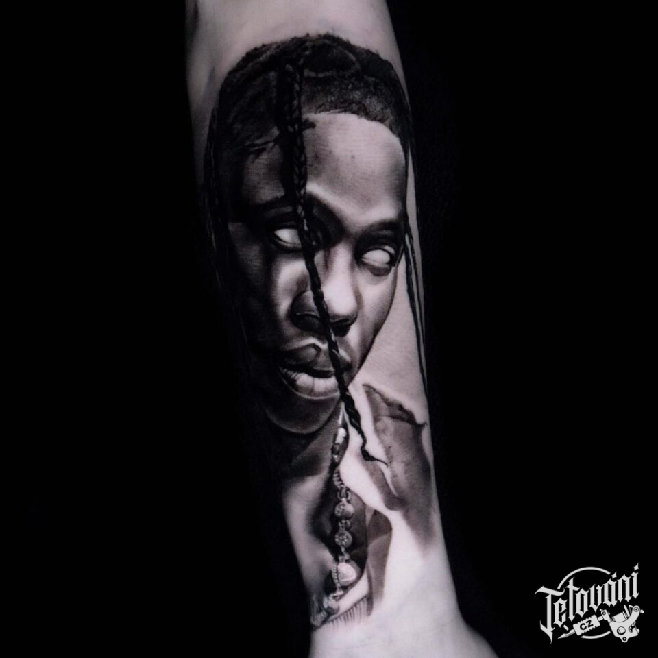 Tetování osobnosti, portrét Travis Scott na předloktí