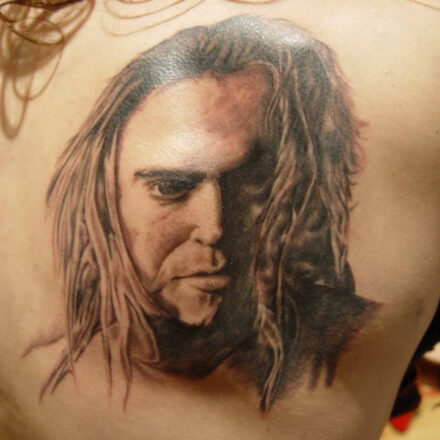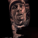 Tetování osobnosti sportu, portrét na lýtku