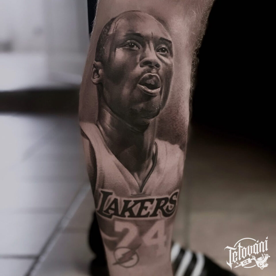 Tetování osobnosti sportu, portrét na lýtku