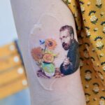 Tetování osobnosti Vincent van Gogh a květiny na paži